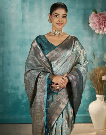 • Navy Blue Silk Woven Banarasi Saree Navy Blue Silk Woven Banarasi Saree ₹5,800.00