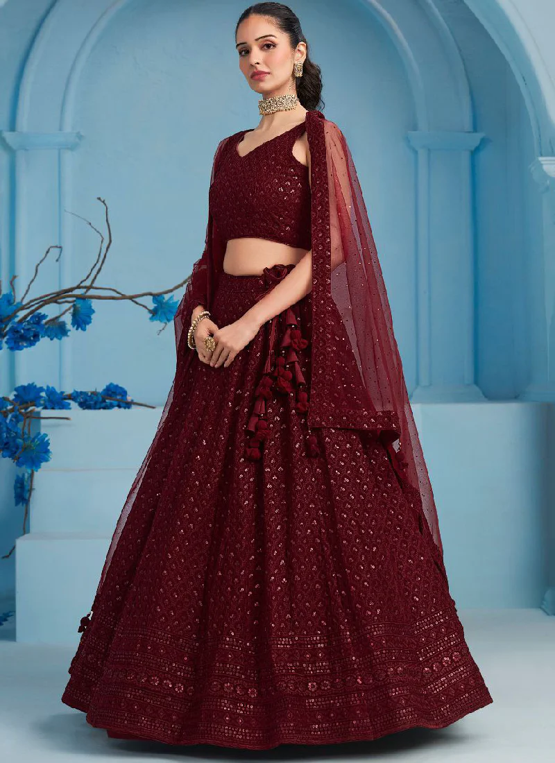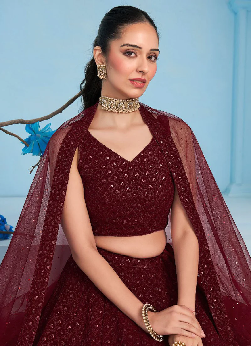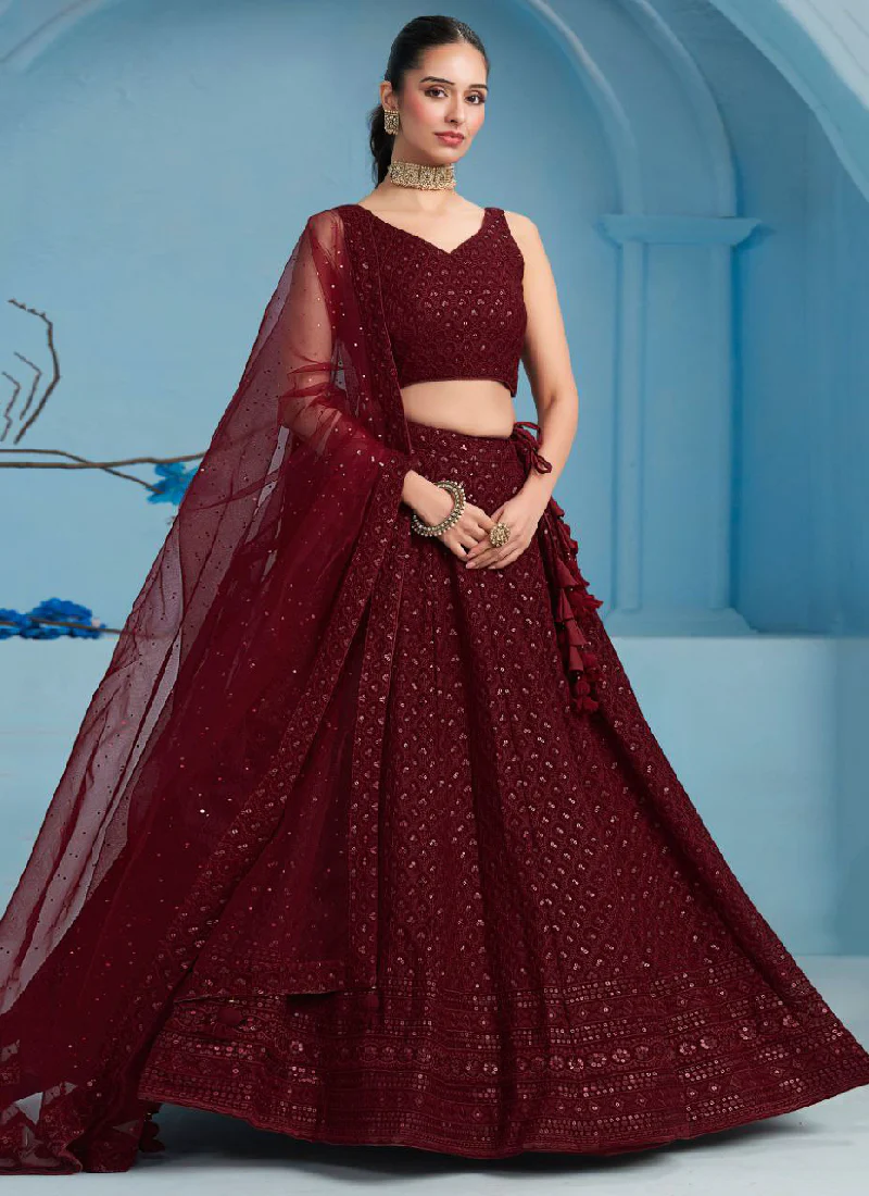Georgette Thread Embroidered Work Maroon Monochrome Lehenga Choli